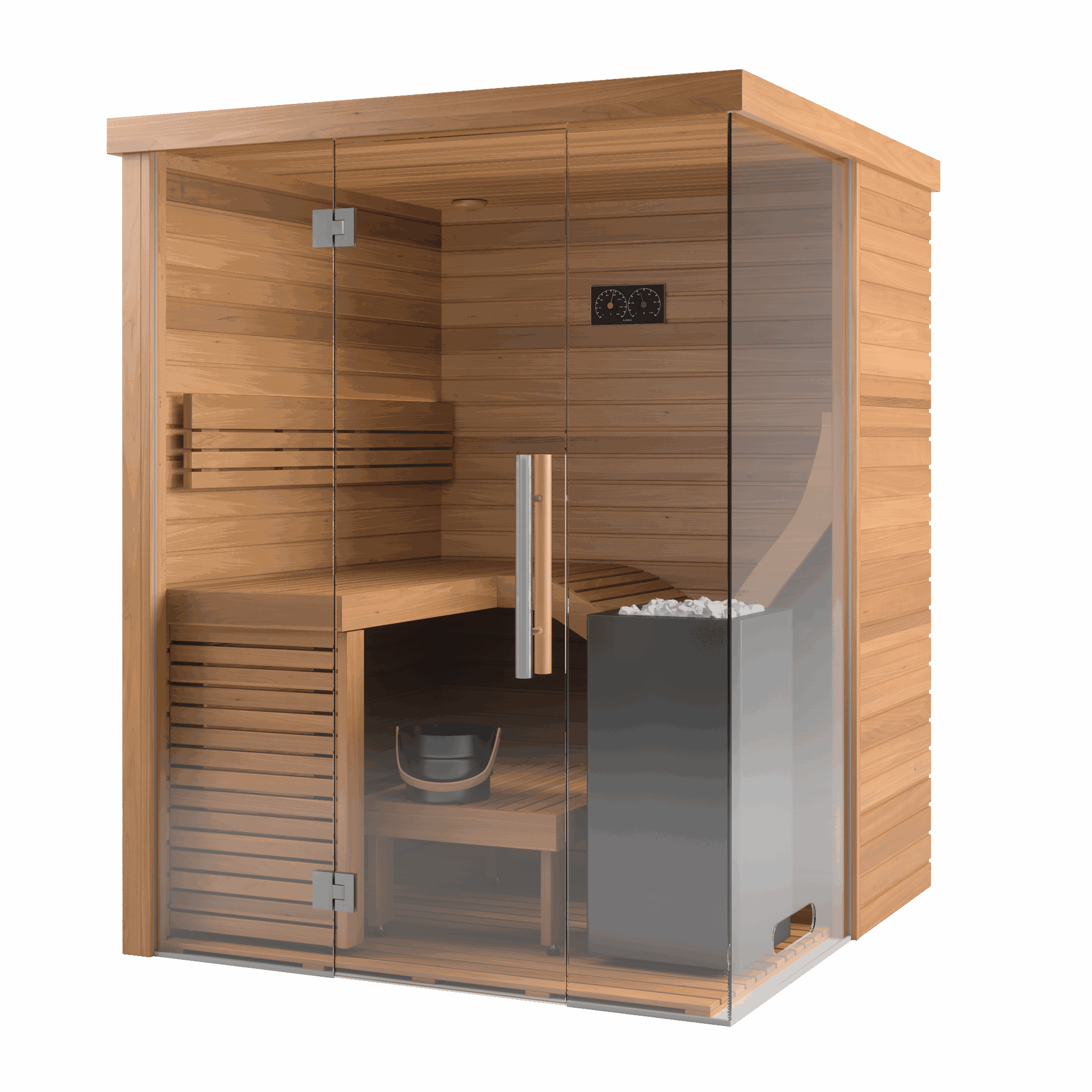 Avec son design ergonomique et ses assises courbées distinctives, le sauna Baia apporte une touche de luxe et de bien-être aux intérieurs plus compacts. Les banquettes ondulées, habituellement réservées aux modèles de grande taille, sont ici réinventées pour les espaces réduits, offrant un confort supérieur sans compromis.
