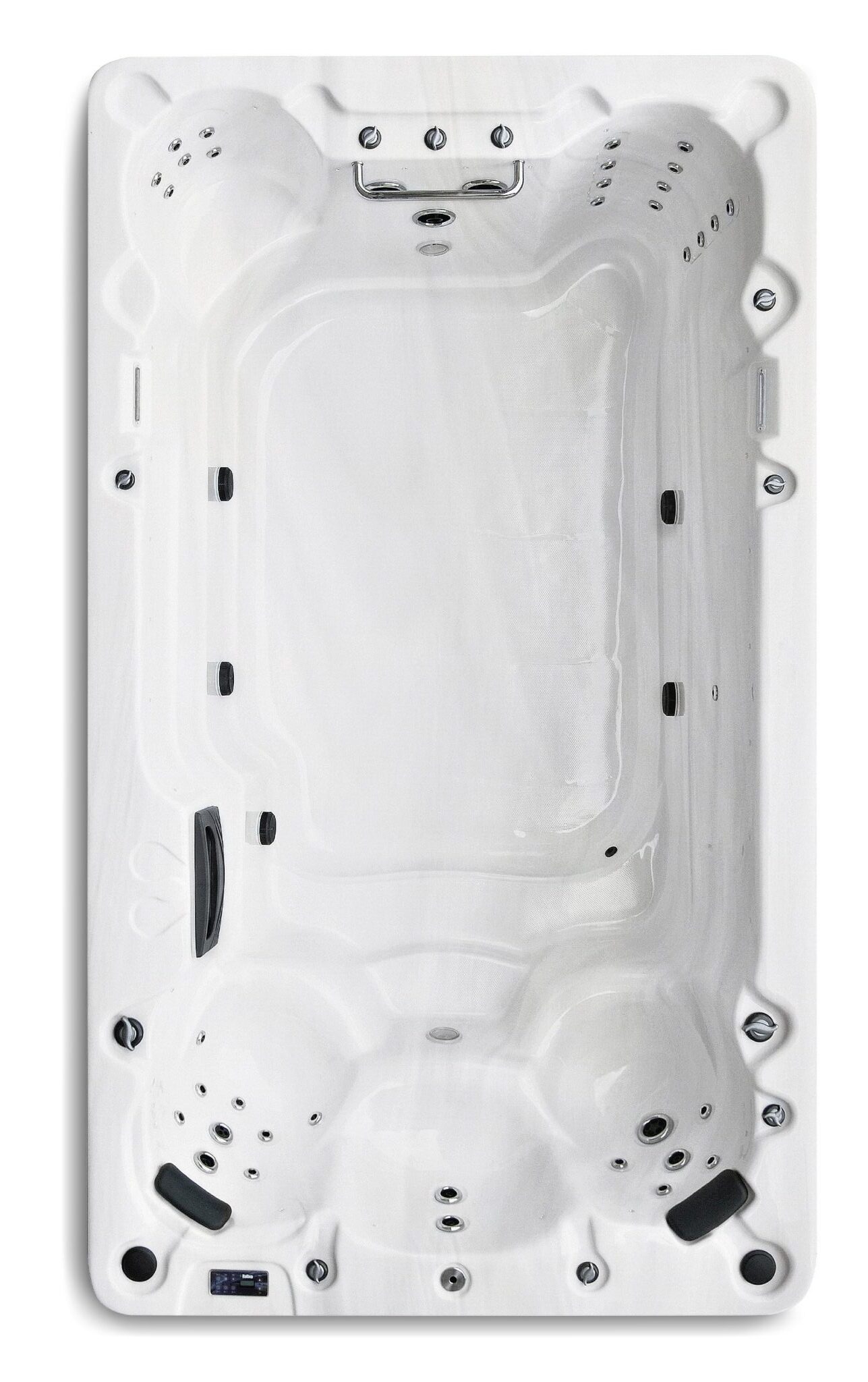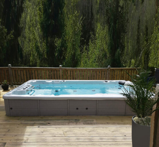 Ses dimensions de 390×228×137 cm permettent une installation encastrée ou hors sol, idéale en intérieur comme en extérieur. Grâce à son puissant courant d’eau, il permet un entraînement efficace à domicile, tout en intégrant hydromassage, chromothérapie et aromathérapie pour une récupération complète.